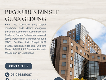 Kami juga siap membantu anda dalam mengurus perizinan Kemenkes, Kemenhub, Izin Reklame, Badan Pertanahan Nasional (BPN), Persetujuan Bangunan Gedung (PBG), Standar Nasional Indonesia (SNI), HKI Merek, Halal MUI, BPOM, PIRT, Bapeten, Kominfo, MIGAS dan Izin Lingkungan